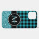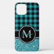 Black and Teal Glitter Buffalo Plaid Monogram Case-Mate iPhone Case