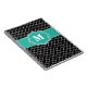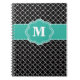 Show off your personal style in a fun way with this black and teal quatrefoil journal note book.