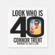 Fortieth birthday photo look who is 40 party napkins in simple elegant black and white. Great idea for adding some stylish simple fun to a 40th birthday party. Personalise with your own photo in the 0 of 40. Reads Happy Birthday 40. Other matching items are available. Graphics by Sarah Trett for www.mylittleeden.com