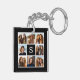 Black and White 8 Photo Collage Custom Monogram Key Ring