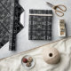 Black and white symmetrical pattern, white and grey lines and shapes on black background