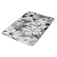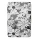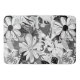 Abstract, monochromatic pattern composed of various floral and geometric shapes in shades of black, white, and grey. The design is a dense collage of elements including stylised flowers, leaves, and various abstract shapes that have a playful and organic feel. The floral components, such as the large central flower and the scattered leaves, give the pattern a botanical vibe, while the integration of geometric shapes like circles and stripes adds a modern, graphic quality. The use of monochrome colours creates a versatile and modern aesthetic that can be applied to a variety of design contexts.