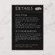 Elevate your wedding with our "Black and White Affair" Detail Enclosure Card, featuring timeless black and white elements and sleek modern design. This card provides essential reception and accommodation information for your guests, ensuring a seamless and stylish celebration. Personalise it with your wedding details to add a unique touch, setting the tone for an elegant affair that will be cherished for years to come.