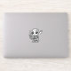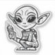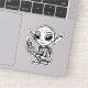 This sticker features a cute black and white alien with pointy ears, crouched down, holding a retro-style walkie-talkie device. With a fun, cartoon-like design, the alien's big eyes and curious look make it perfect for decorating laptops, notebooks, or water bottles. Ideal for fans of sci-fi, space adventures, and quirky characters, this sticker brings an out-of-this-world vibe to any surface.