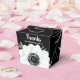 Takeout favour boxes feature elegant watercolor white and black anemone flowers and leaves on a black background box with your personal thank you message on the front and your names on the bottom. MATCHING items in our collection.