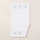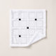 A modern Art Deco black and white designed bathroom towel set consisting of large black framed white squares with small black squares geometrically spaced amongst the larger squares.
