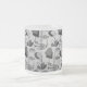 This Black and White Atomic Pattern Frosted Glass Mug is black and white and retro all over. The design features a replica of a vintage 1950's fabric, as seen through the lens of a black and white television program. The modern art shapes include everything from the abstract to the fish! There are small fish swimming to the left, while blowing bubbles. There are larger black and white fish swimming to the right, while blowing grey bubbles. And there are dark grey jellyfish, who don't seem to be doing much of anything. This is the perfect design for anyone who loves fish, fabric, and items with a retro feel. This black and white design proves that you don't have to have colour to be colourful. It's a kitschy blast from the past!