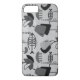 This Black and White Atomic Pattern iPhone 6 Case is black and white and retro all over. The design features a replica of a vintage 1950's fabric, as seen through the lens of a black and white television program. The modern art shapes include everything from the abstract to the fish! There are small fish swimming to the left, while blowing bubbles. There are larger black and white fish swimming to the right, while blowing grey bubbles. And there are dark grey jellyfish, who don't seem to be doing much of anything. This is the perfect design for anyone who loves fish, fabric, and items with a retro feel. This black and white design proves that you don't have to have colour to be colourful. It's a kitschy blast from the past!