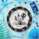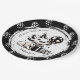 A cute axolotl and birthday balloons themed personalised birthday party paper plates with black and white balloons with polka dots and an axolotl with birthday gifts and balloons.