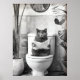 Black and White Bathroom Cat Print, Funny Posters, Poster