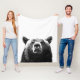 Black and white bear animal portrait fleece blanket