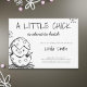Cute baby shower invitation in black and white colours. The illustration is a baby bird hatching from its egg.