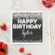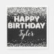 Black and white birthday party napkins for a fun party with a modern classic look with glitter and foil balloons on paper napkins.