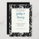 Black Damask Wedding Invitation with black and Teal lettering.