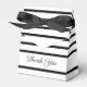 Designer wedding favour guest box with a black ribbon, ribbon colours can be changed, pattern is a modern and bold black and white stripe print. The colours can be changed to any colour to coordinate with your special event theme. Text on both front and back can be personalised to any message, or text is removable.