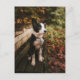 Man's best friend, what's better than that? Featuring a black and white border collie puppy on a park bench with leash.