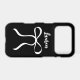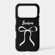 This black phone case with a white bow is for anyone who loves contrast, confidence, and a little quiet drama. The deep black background keeps it sleek and elevated, while the crisp white bow adds a soft, feminine touch that never goes out of style.