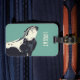 This luggage tag features a boxer dog illustration over a green background with the customisable default text "upbeat". This is a great design for Boxer owners, dog owners, and dog lovers.