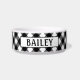 Black and white buffalo check plaid design personalised with your cat's name. The text font style, size and colour can be changed as desired.