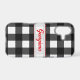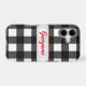 Add timeless style to your phone with this black and white buffalo check case. The bold checkered pattern brings a classic yet modern farmhouse look. Personalize with a name in elegant red script in a retro style.