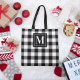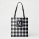 Black and White Buffalo Plaid Custom Monogram Tote Bag