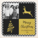 Black and White Buffalo Plaid Gold Holiday Photo Square Paper Coaster