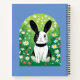 A cute black and white bunny in a field of wildflowers. Digitally created in a cartoon style. Perfect design for kids and adults on many trendy products! Customise your background colour or text!