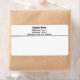 This template shipping label has four lines of black display text. The top line is bold, which you may want to use for your company name. The other lines also can be edited to show your organisation's return address. The text is black. All text can be edited or deleted. A black, horizontal line is under the text to separate the return address from the delivery address.