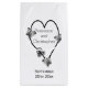 Wedding favour gift bag black and white butterfly heart design. Customise this wedding favour gift bag with your wedding details. Should you require any help with customising then contact us through the link on this page. Black and white butterfly heart design personalised wedding favour gift bag