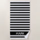 A striking striped beach towel with black and white cabana stripe pattern. Personalise with your name.