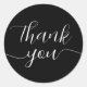 Black and White Calligraphy Elegant Thank You Classic Round Sticker