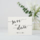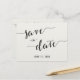Black and white calligraphy Save the Date wedding postcards with customisable text