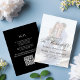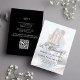 This design features a black and white wedding invitation with elegant calligraphy script, with a minimalist, photo template, and a simple, elegant, trendy, formal style, typography, a classic style with a modern QR code template.