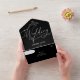 Black and White Calligraphy Script Wedding All in One Invitation is the perfect wedding invitation with no need for separate pieces of stationary! The Black with white script calligraphy is elegant and sophisticated. It has a classical timeless elegance.