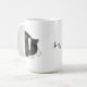 Black and white kitten mug. The mug features a green eye cat laying down and peeking. Cute black and white cat mug for cat owners. A great gift to cat moms or cat dads who have a tuxedo kitten or cat. Add a name on the centre of the mug.