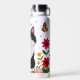Black and White Cat, Flowers and Butterflies Water Bottle