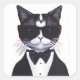 Black and White Cat in a Tuxedo and Bow Tie Square Sticker