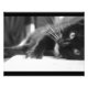 Artistic, landscape black and white photograph of a black and white cat relaxing.