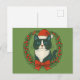 Black and White Cat, Santa Christmas Holiday Postcard
