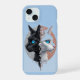 Black and White Cat Split Portrait With Blue Eyes iPhone 15 Case