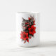 Black and White Cat with Bright Red Blooms Coffee Mug