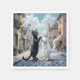Black and white cats dancing in the middle of a charming cobblestone street of a quaint town
