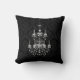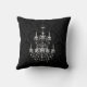 Classy and chic black damask background pattern with a white shaded chandelier in the foreground. A pretty and feminine accent throw pillow for an elegant interior design theme. A lovely touch to add an element of victorian or traditional decor to the dining or living room.