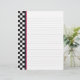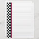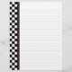 Letterhead designed to fit Grandma's Kitchen Recipe Binder, this has a black and white chequerboard image along the side with a red accent line. You will need to punch holes along the side of the pages to add this letterhead to a binder.