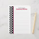 Letterhead designed to fit Grandma's Kitchen Recipe Binder, this has a black and white chequerboard image along the side with a red accent line. You will need to punch holes along the side of the pages to add this letterhead to a binder.