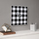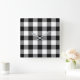 Square wall clock with a classic country style black and white checked gingham pattern design. Matching home decor available.