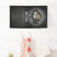 A cheers and beers 50th birthday party theme banner with white text on black chalkboard background. A happy cartoon guy is drinking beer straight from the birthday barrel with candles. The text can be customised to fit other birthday parties like 40th or 60th birthdays.
