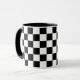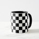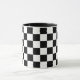 Simple black and white chequerboard pattern. This mug was created years back when the print area was slightly different. But, you can still customise the pattern by filling the print area with the image and changing the background colour. We've displayed this on the ringer mug because it is attractive, but it works with the basic mug too.