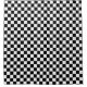 Black and white chequerboard pattern with evenly spaced, alternating squares. The design creates a classic, symmetrical look commonly seen in chessboards.