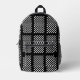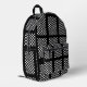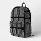 Go back to school in style with this cool black and white chequered backpack. This backpack features a pattern of checkers and stripes in alternating white and black. Original digital artwork by The Gifted Grackle.